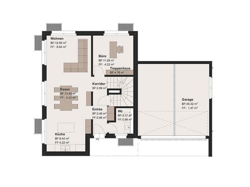 - Bruttogeschossfläche 165 m2